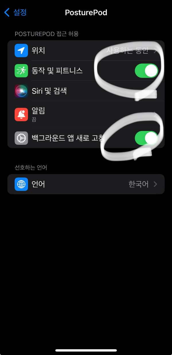 앱 이름이 PosturePod이라는 영문으로 인해서 타이핑 치기 번거로운 분들을 위해서