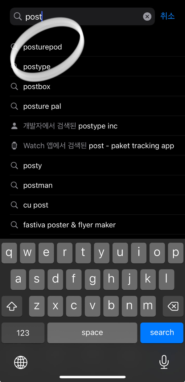 PosturePod 단어의 Post까지만 치더라도 연관 검색어로 바로 확인이 가능합니다.