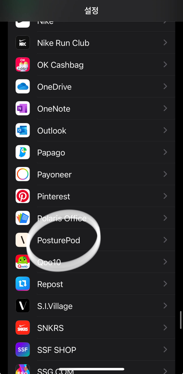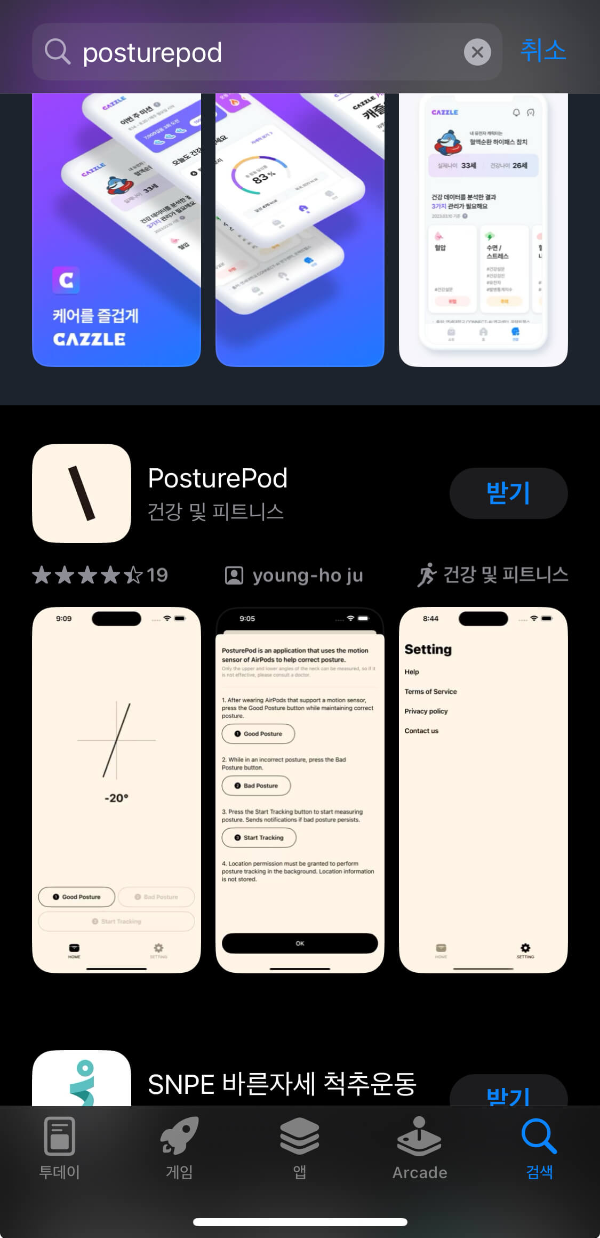 앱 이름이 PosturePod이라는 영문으로 인해서 타이핑 치기 번거로운 분들을 위해서