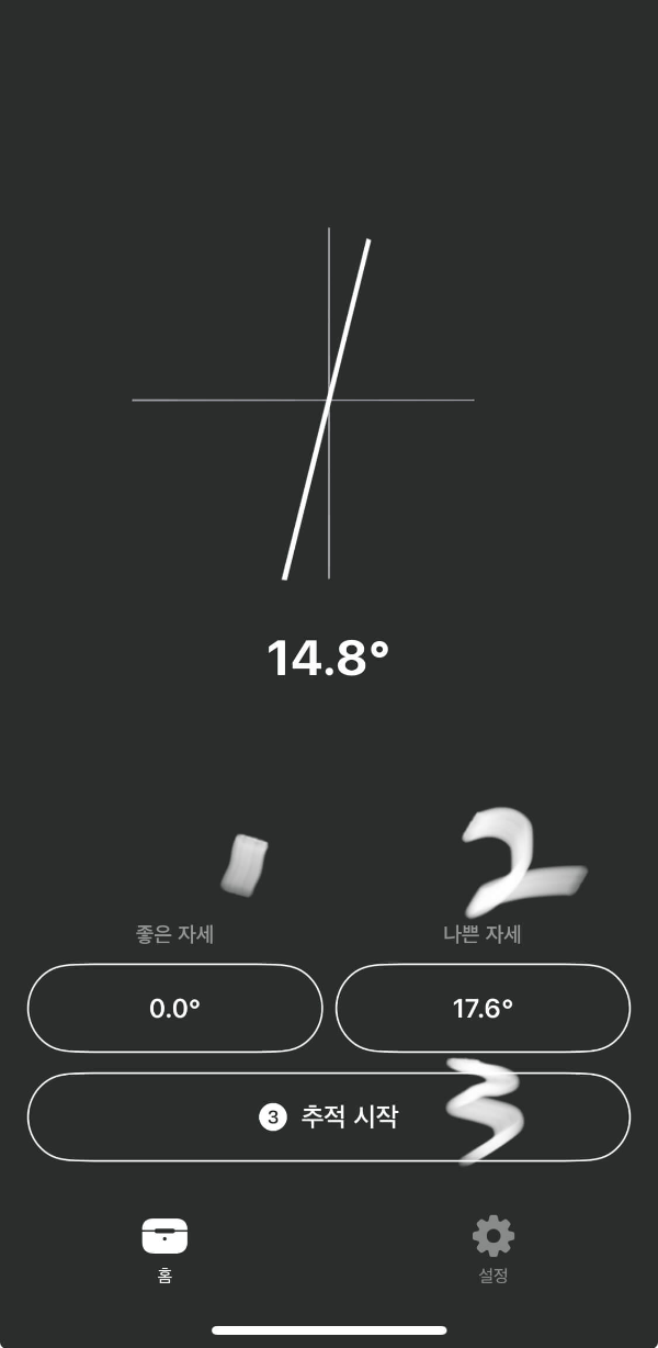 설정한 각도를 이탈하면 알림이 울리는 거북목 자세교정 꿀 어플입니다.