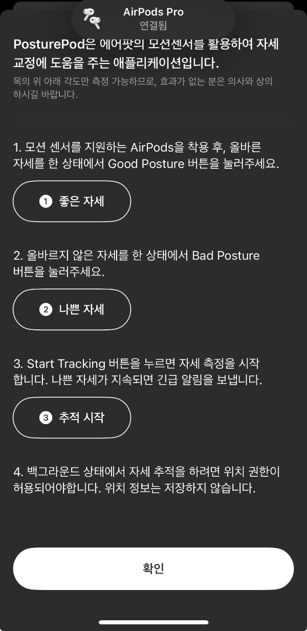 에어팟 거북목 각도 예방 앱 PosturePod을 이용해서 꾸준히 착용하고 관리하시면 건강에 도움이 되겠습니다.