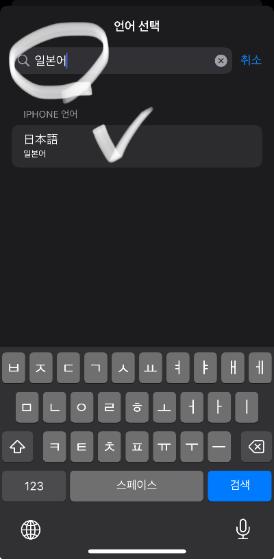 - IPHONE 언어에서 '일본어'를 터치해주세요.