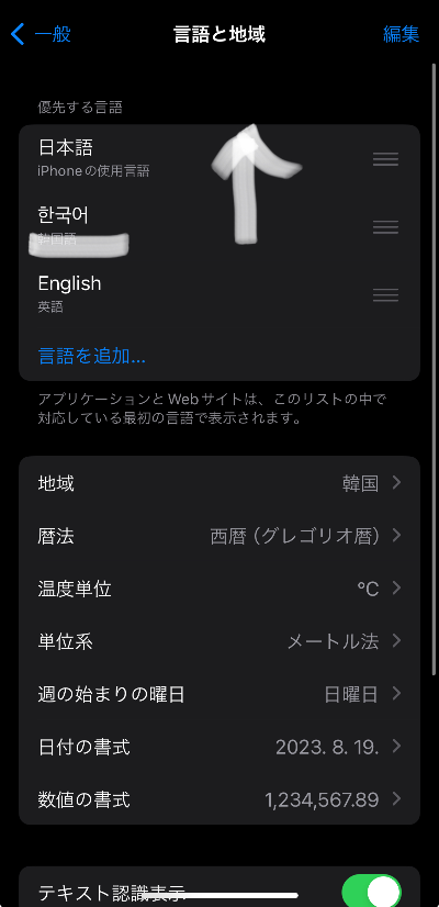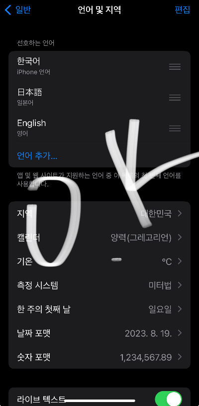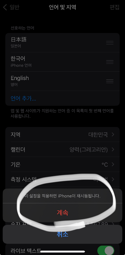 이제 다시 아이폰언어변경을 통해서 다시 한국어로 변경하려고 합니다.