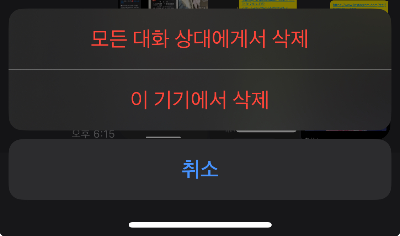 모든 대화 상대의 채팅방 화면에서 삭제를 하는 건데요.
