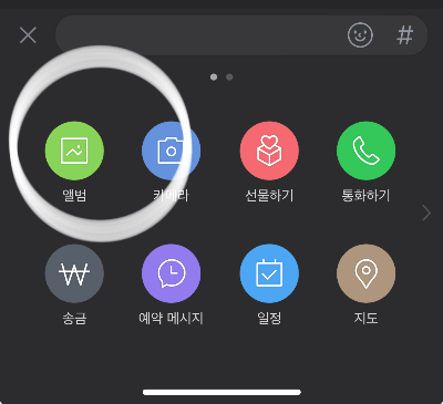 4. "+"를 선택 후 나오는 메뉴화면에서 "앨범"을 선택해 주세요.