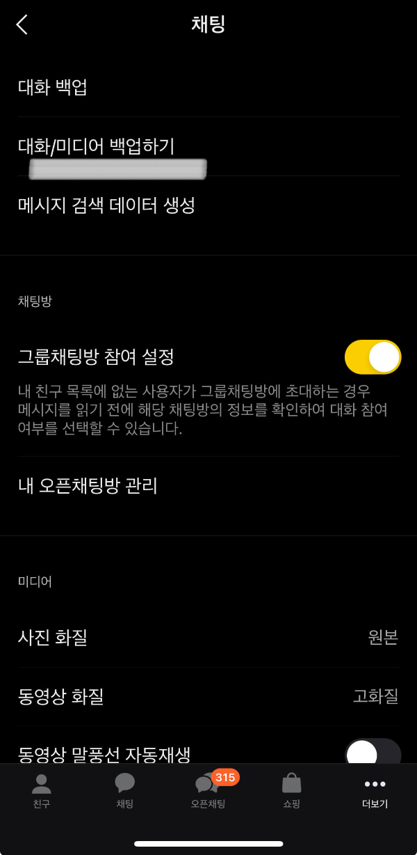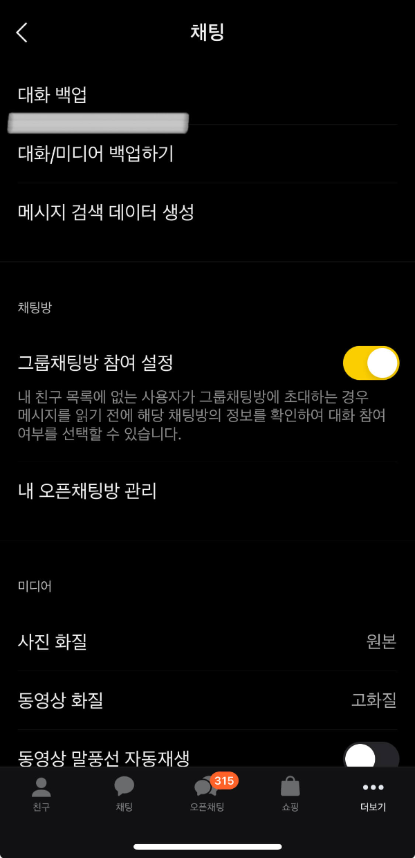 카톡에서 대화/미디어 백업을 원하시나요?