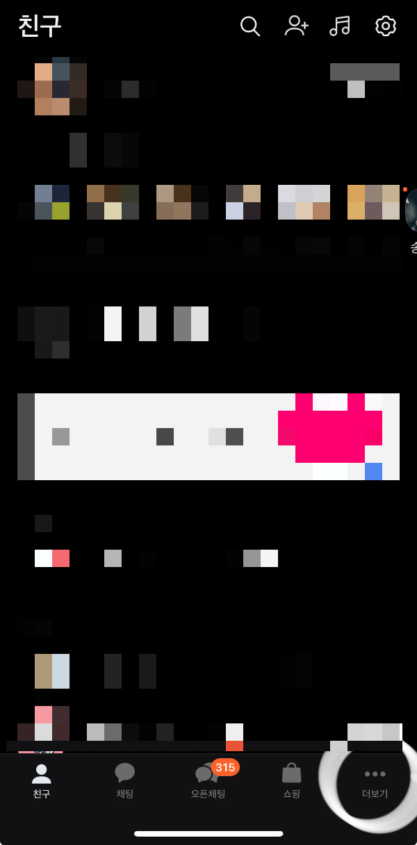 카카오톡 화면에서 하단...(더 보기) 선택해 줍니다.