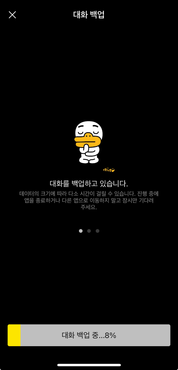 대화백업을 하는데 시간이 소요됩니다.
