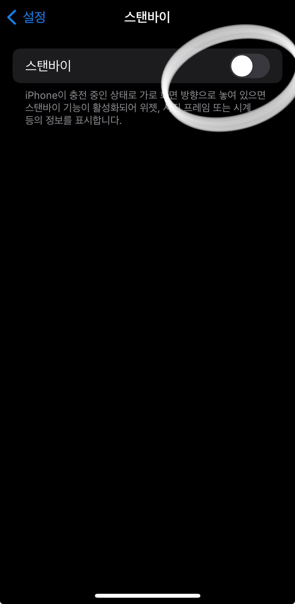 아이폰 잠금화면 스탠바이 설정 화면입니다.