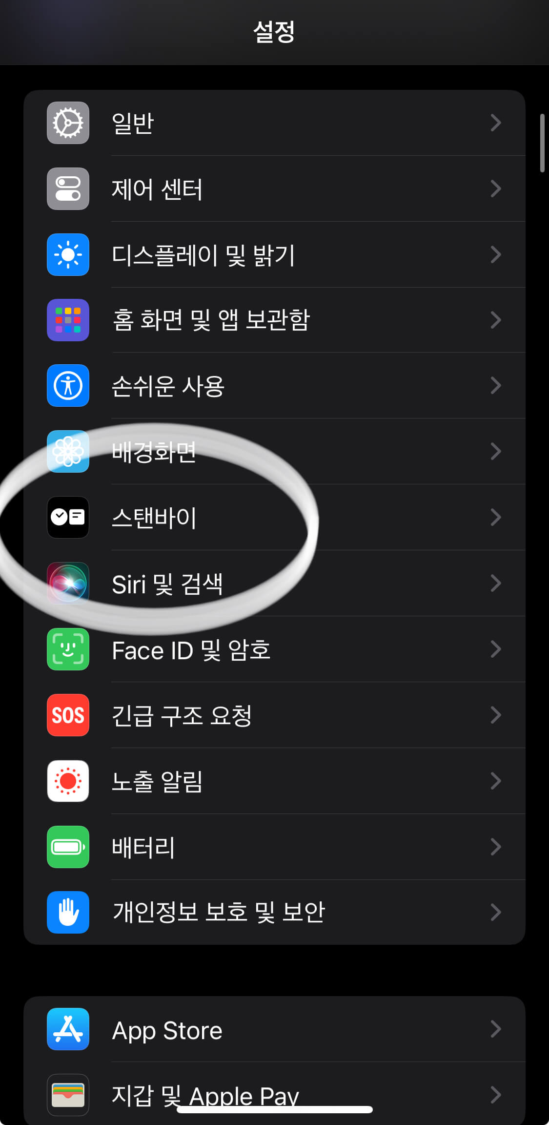 스탠바이 아이폰 잠금화면 설정 과정을 사진으로 보여드립니다.