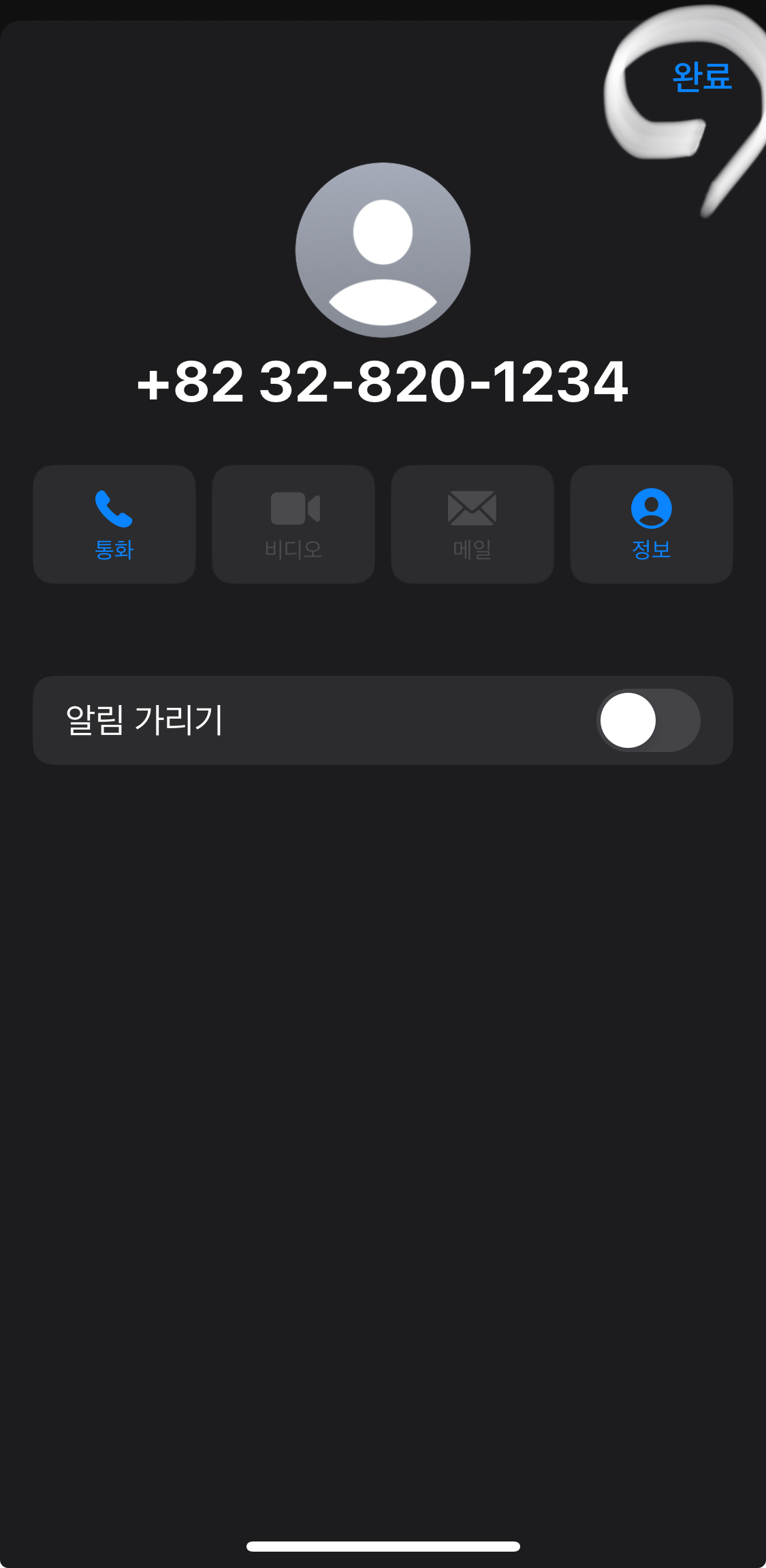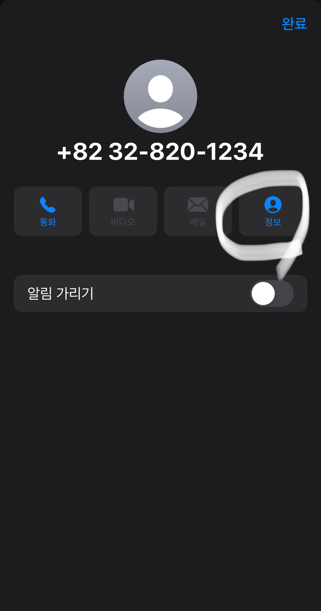 통화,정보 그리로 알림가리기를 확인할 수 있습니다.