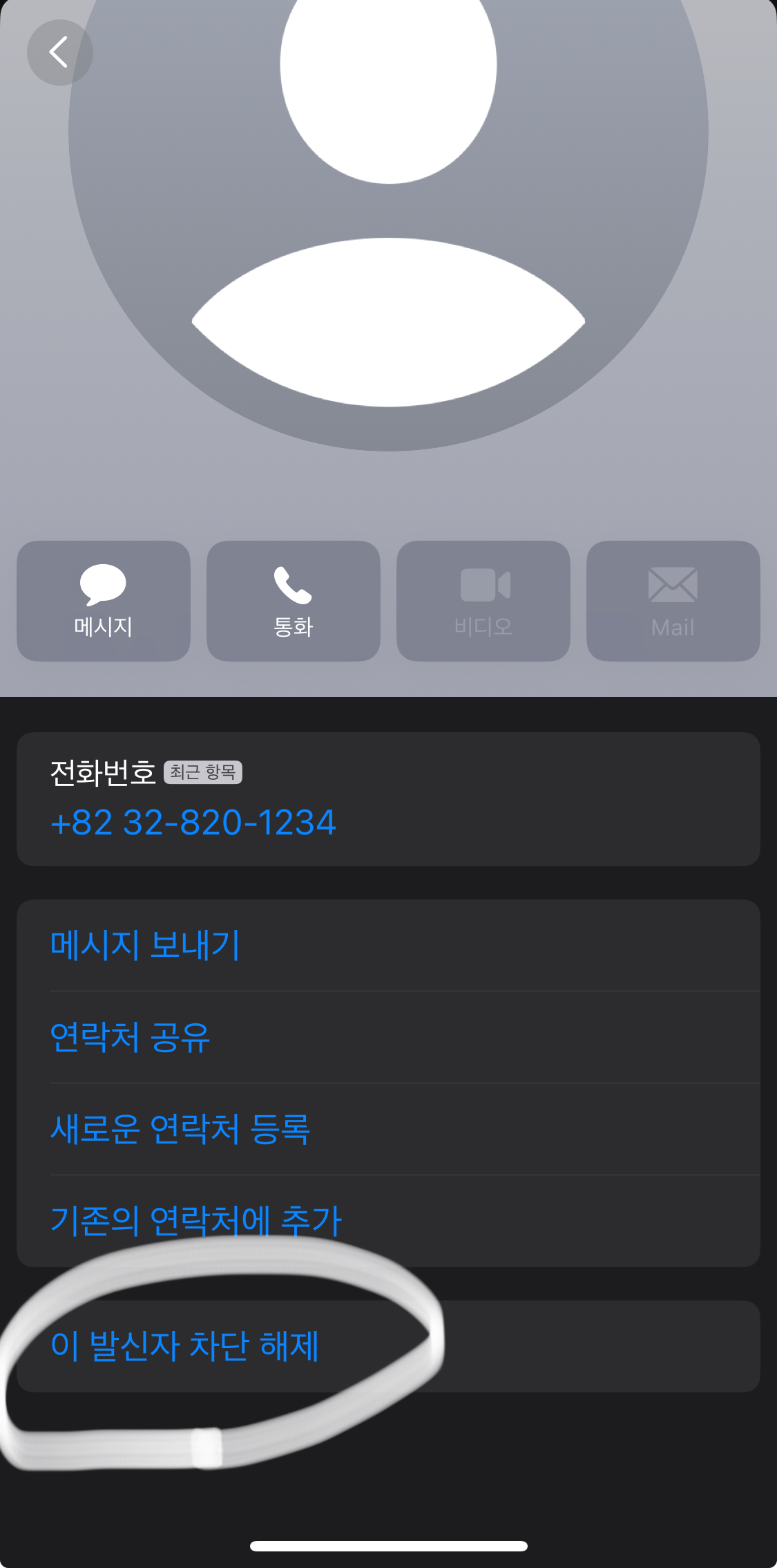 이제 '이 발신자 차단' --> '이 발신자 차단 해제' 문구로 변경되게 됩니다.