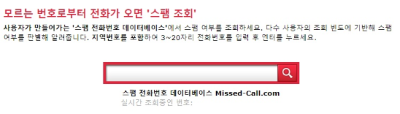 부재중 전화번호를 입력하여 스팸 전화번호 여부를 검색할 수 있습니다.