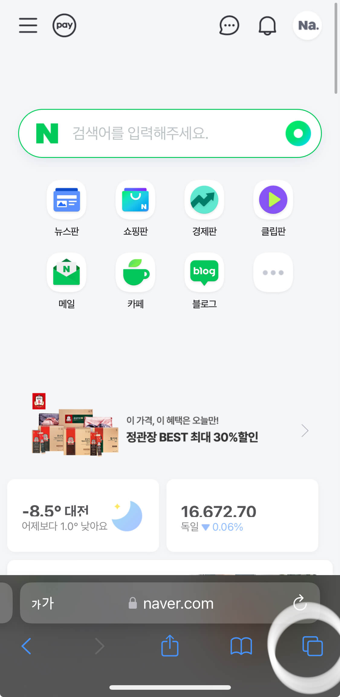 - 사파창(safari) 우측 하단에 "네모네모"를 선택해 주세요.