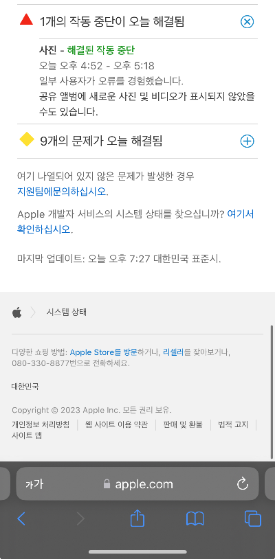 - 애플 시스템 상태