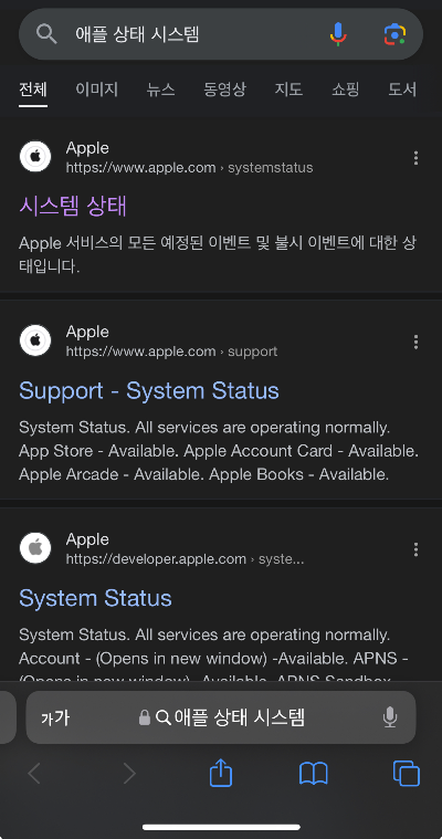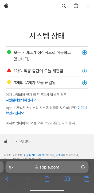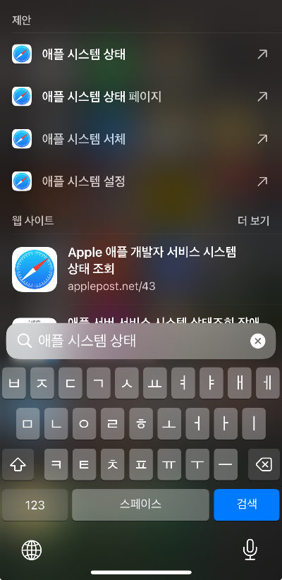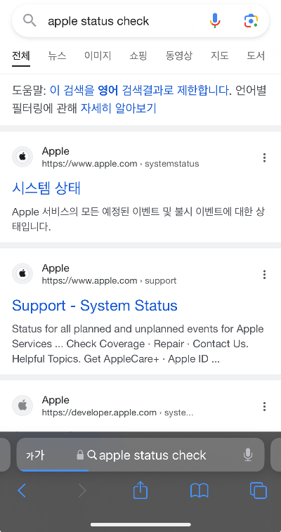 - 사파리에서 apple status check 라고 영어말고 한글로 입력해도 됩니다.