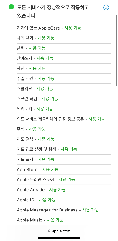 - 아이폰의 대표적인 서비스가 정상적으로 작동하고 있으며