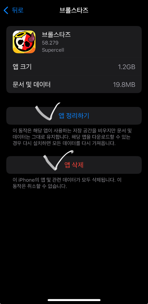 • 데이터를 보존하고 싶다면 '앱 정리하기'를 선택하면 됩니다.