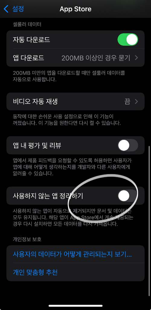 아이폰에서 사용하지 않는 앱을 자동으로 삭제하는 기능은 공간 확보에 큰 도움이 됩니다.