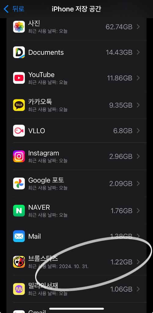 아이폰을 이용하다보면 어느새 나도 모르게 저장공간이 10~20기가만 남게 되는데요.