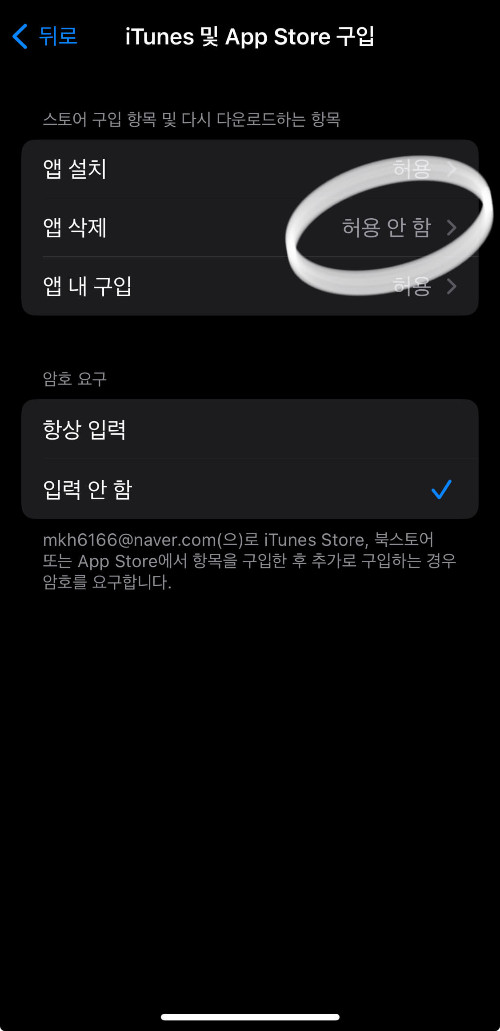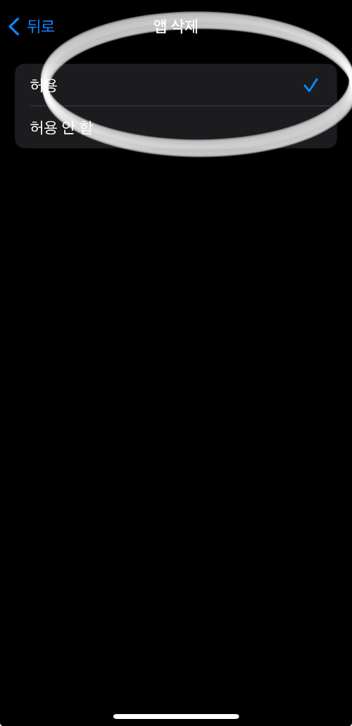 앱 삭제 - 허용 안 함을 "허용"으로 변경 체크