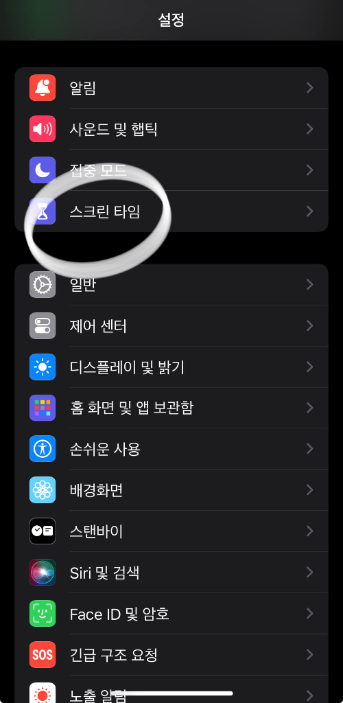 - 설정에서 "스크린타임"으로 이동해 주세요.