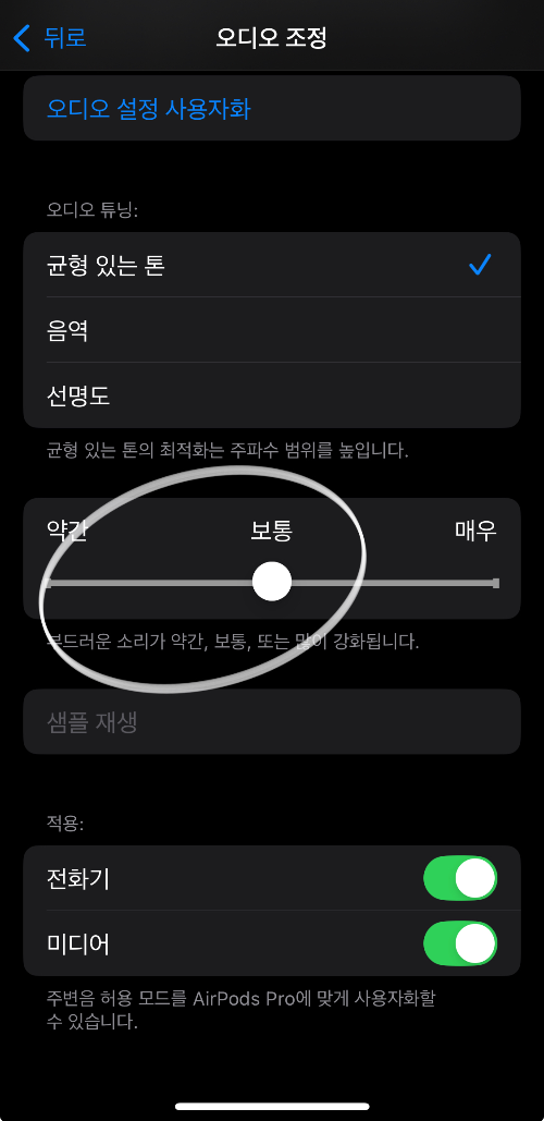 균형있는 톤 설정 후 -> 보통으로 설정하는거 잊지마세요.