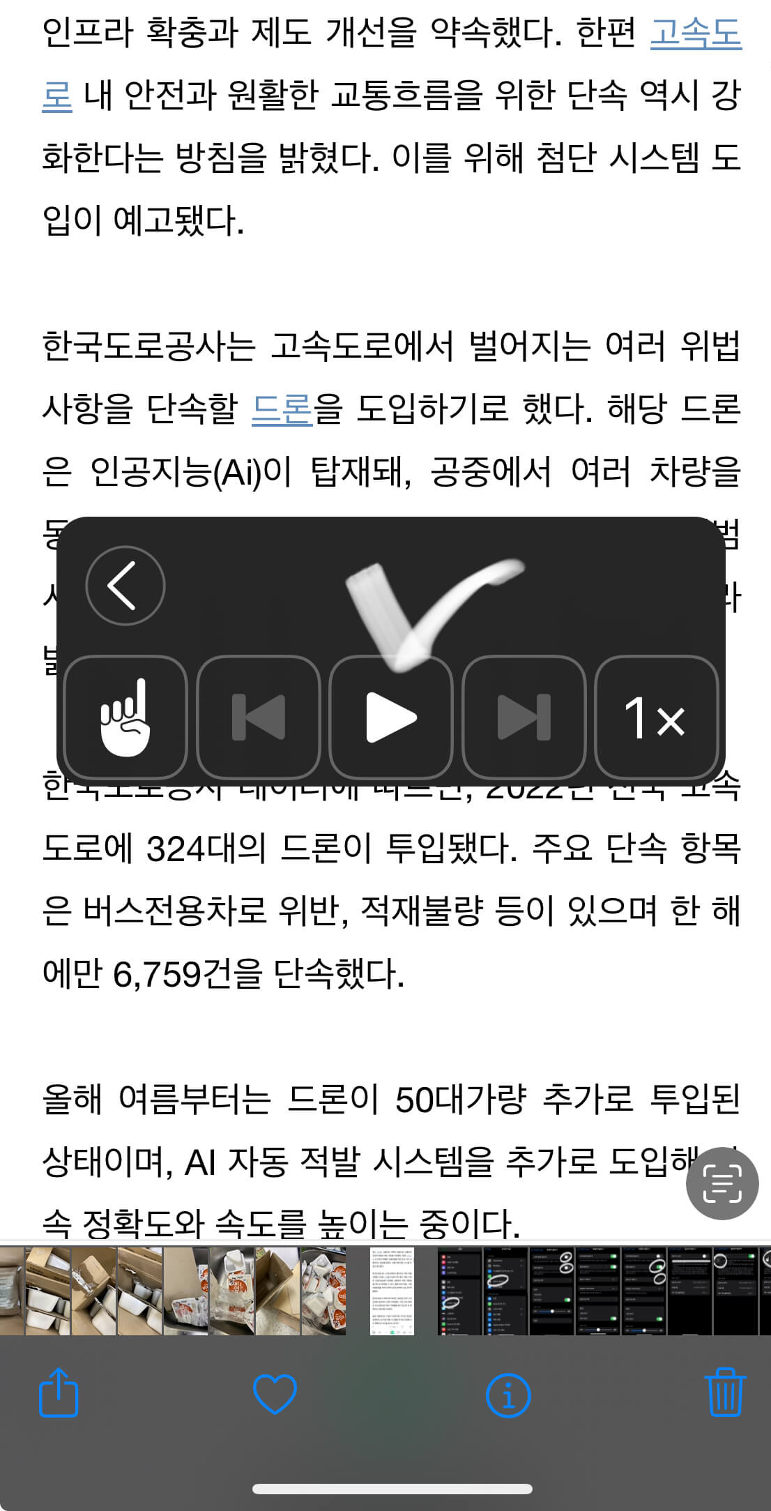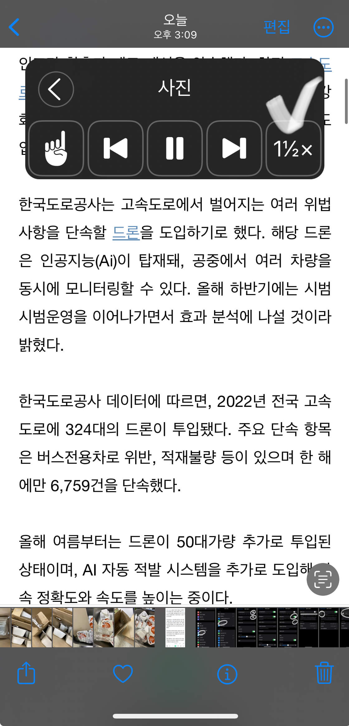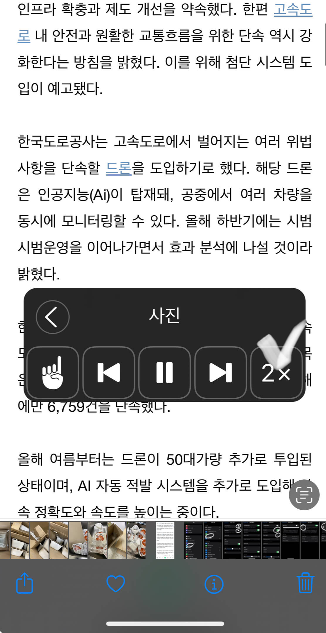 또한 아이폰 읽어주기 속도는 1배속(정상속도),1.5배속, 2배속으로 터치를 하면 자동으로 변경됩니다.
