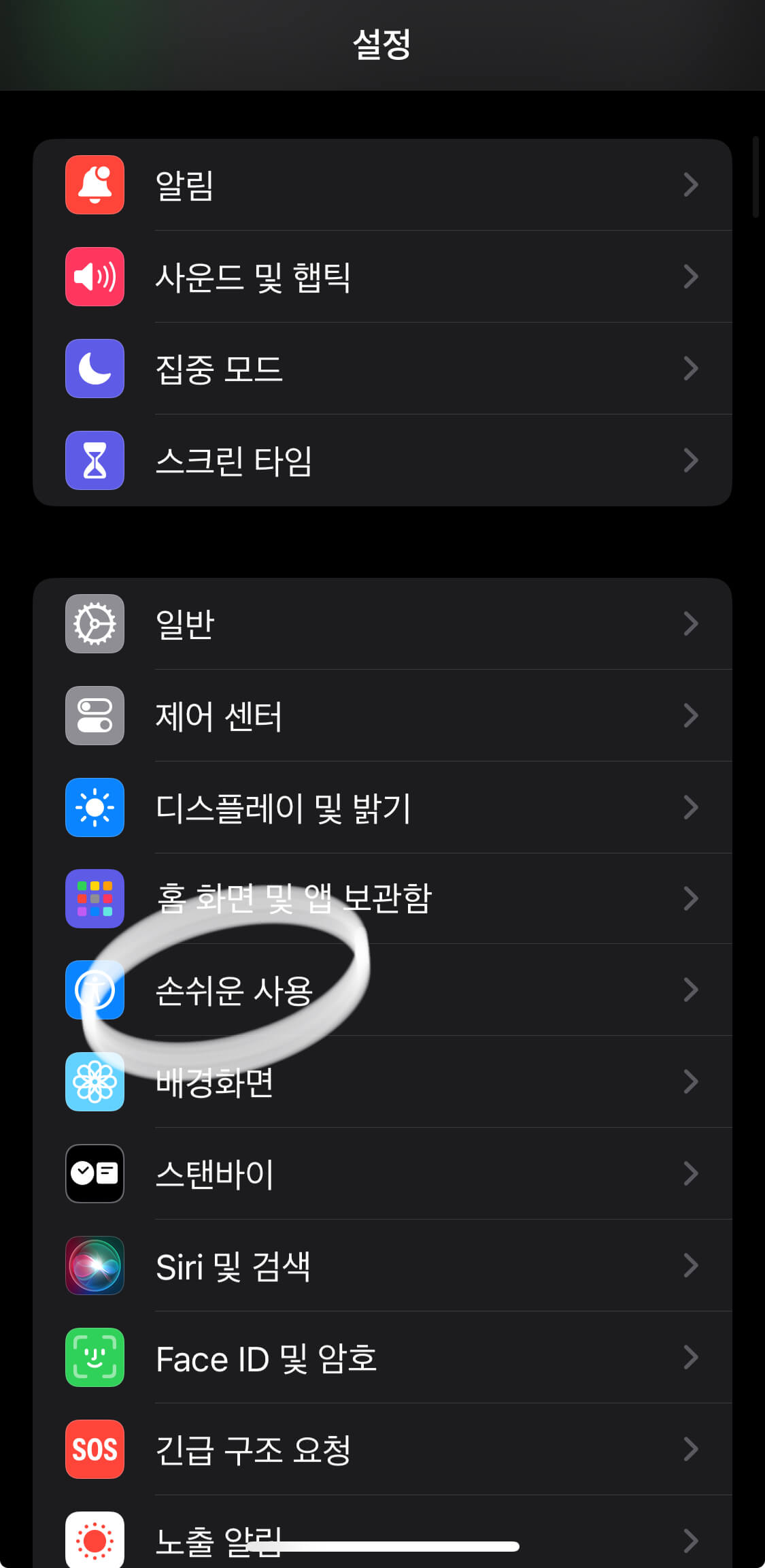 - "설정"에서 "손쉬운 사용"선택해 주세요.