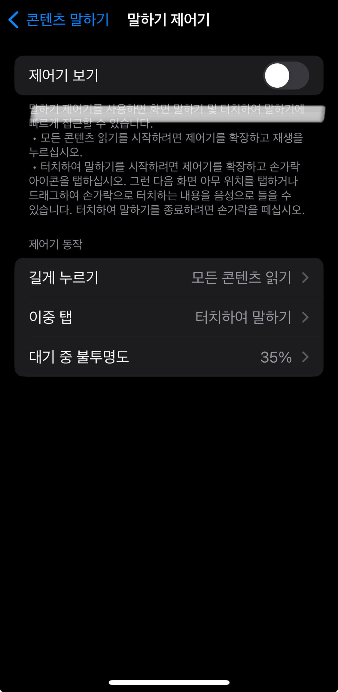 아이폰 읽어주기 기능 설정은 완료되었습니다.