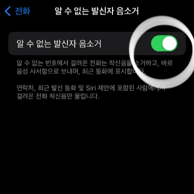 아이폰 모르는 전화 번호 차단 음소거 기능을 활성화시키기 위해서