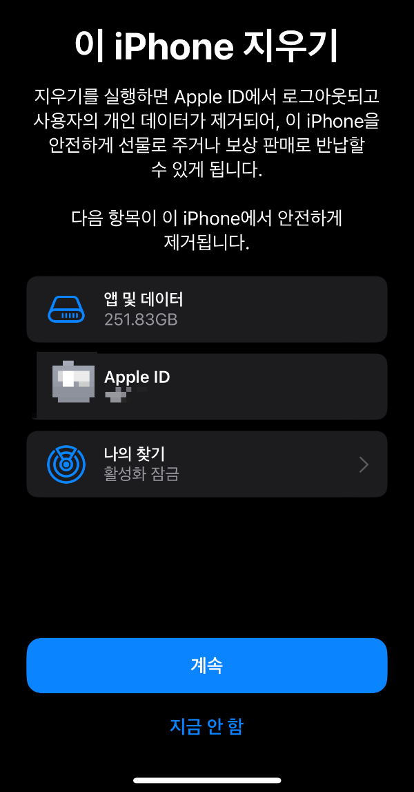 아이폰을 교체하거나 판매할 때 초기화가 필요합니다.