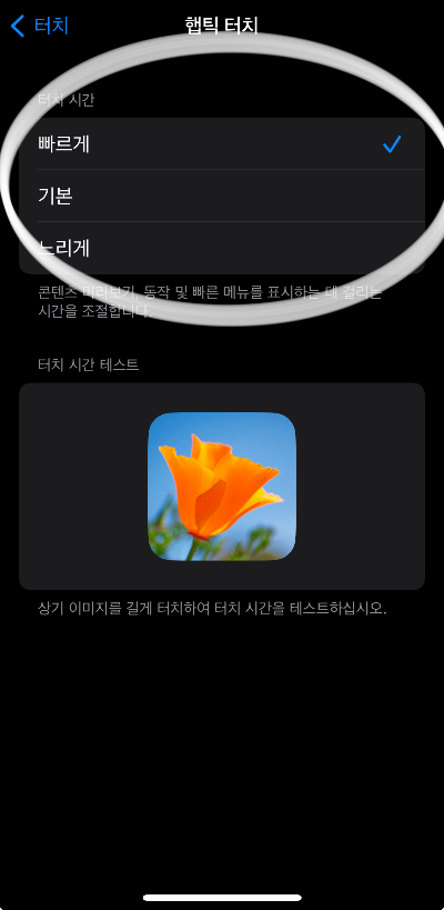 3가지의 터치 시간에서 본인이 원하는 방향으로 선택을 해주면 바로 적용이 됩니다.