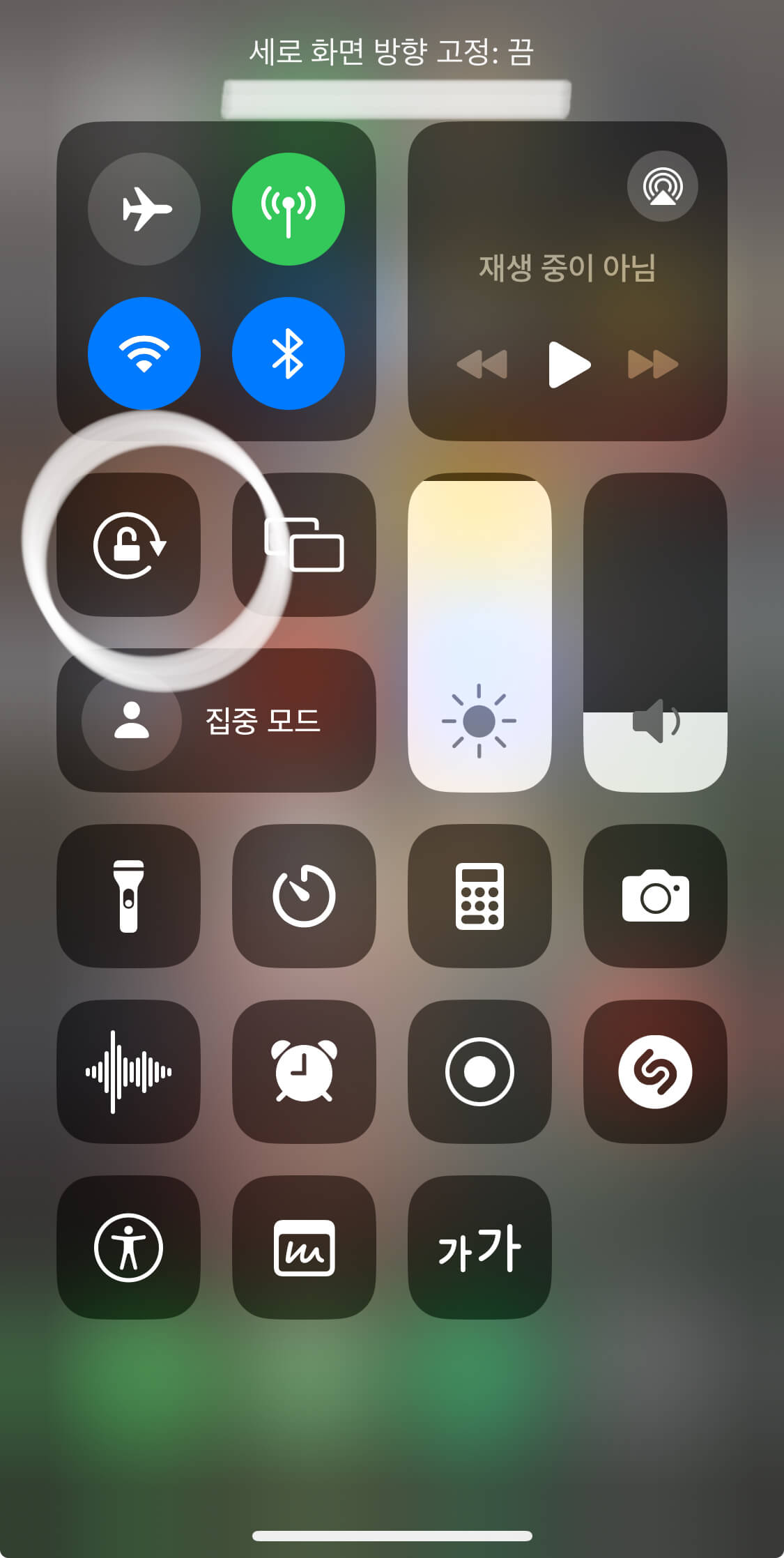 아이폰 화면 회전 잠금 활성화로 세로화면 고정을 했을 때