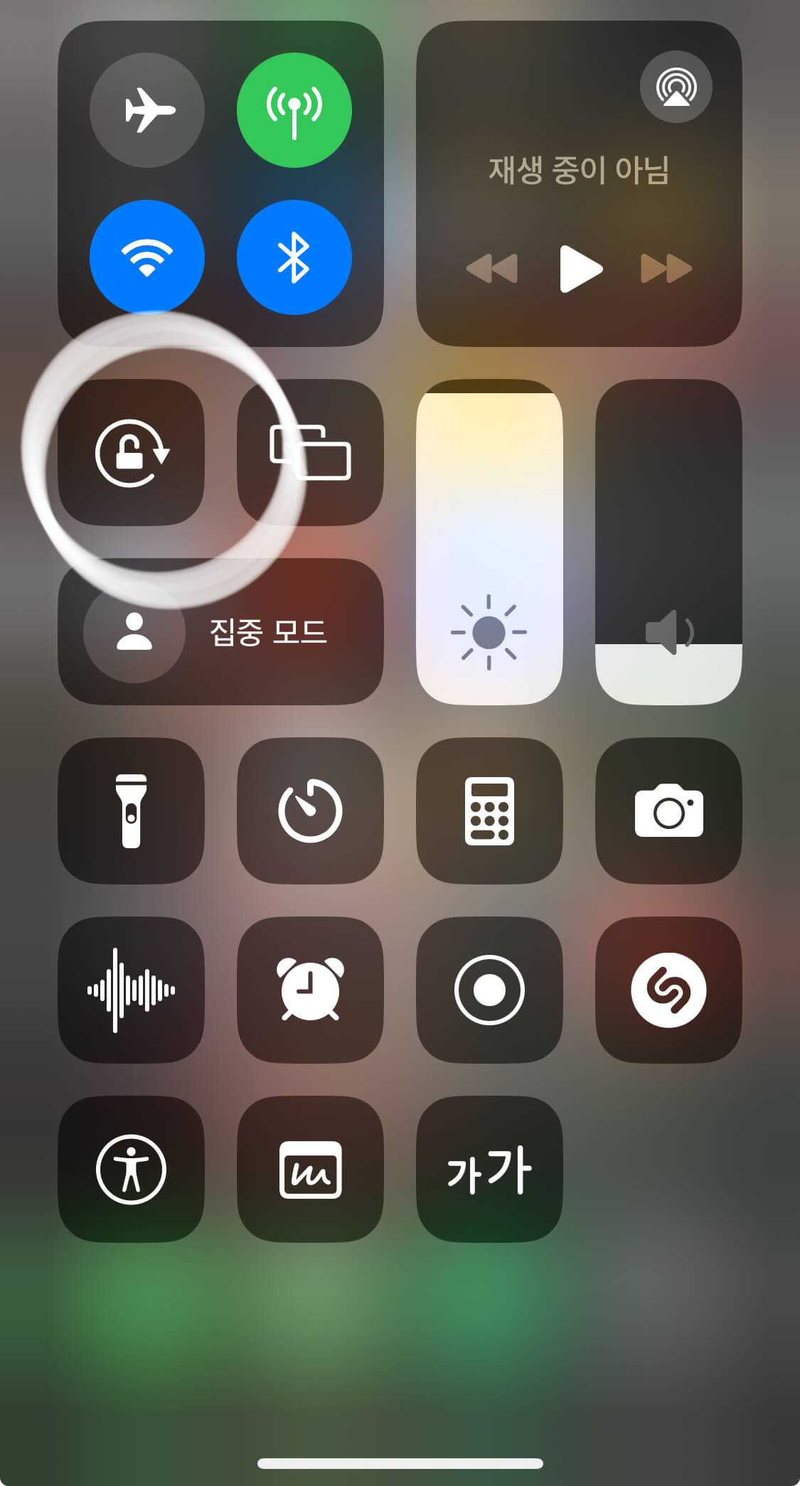 - "제어센터"에서 동그라미 화살표에 둘러싸인 자물쇠가 보이나요?