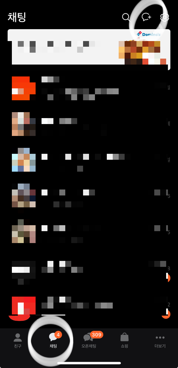 - 카톡 메인 하단메뉴에서 '채팅'으로 이동합니다.