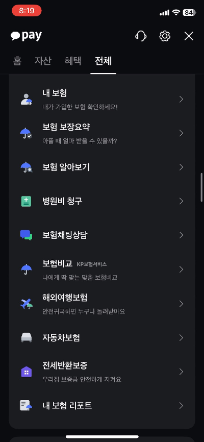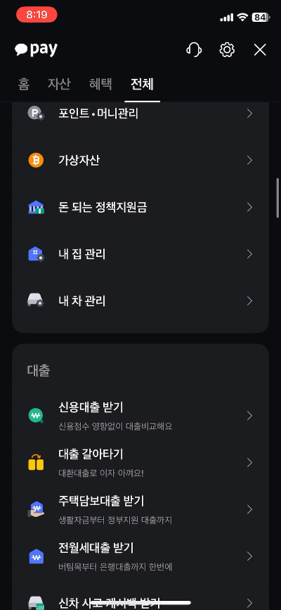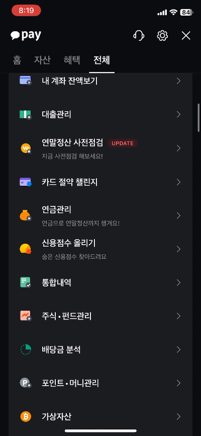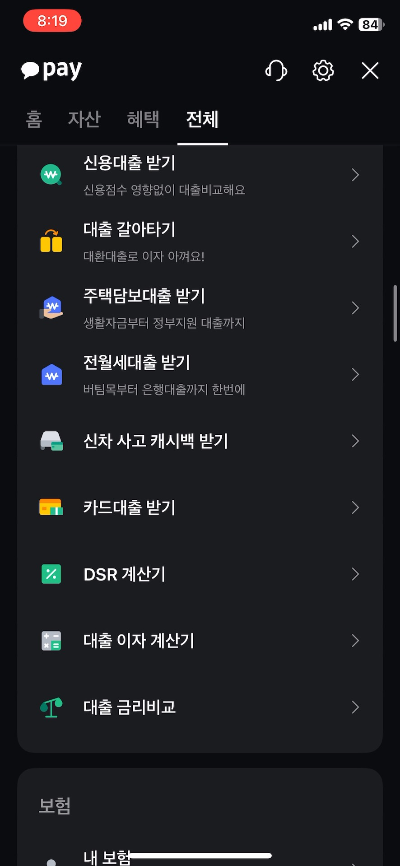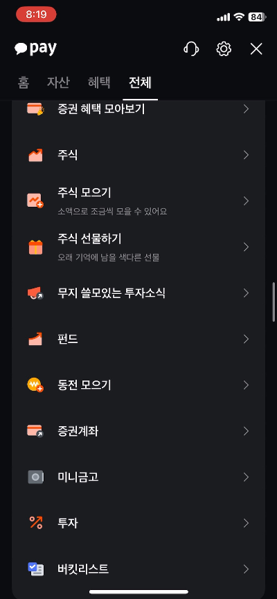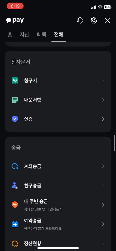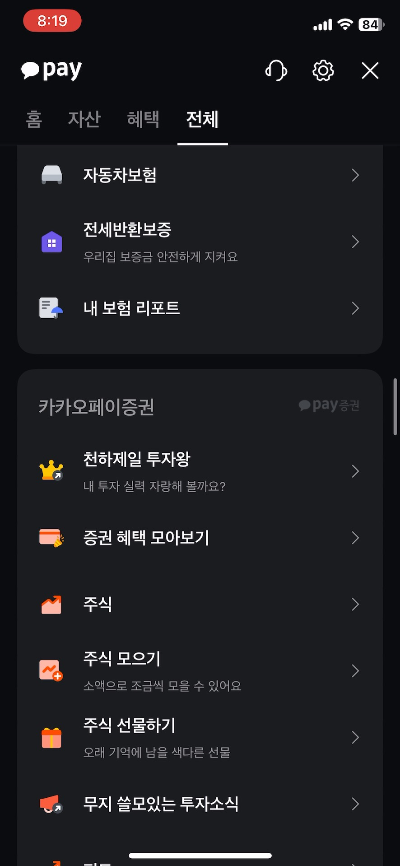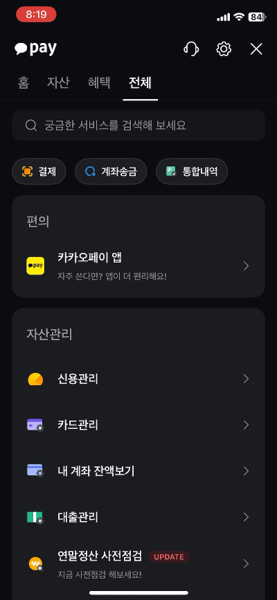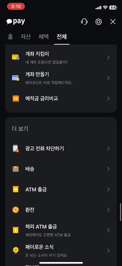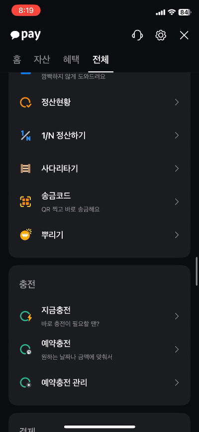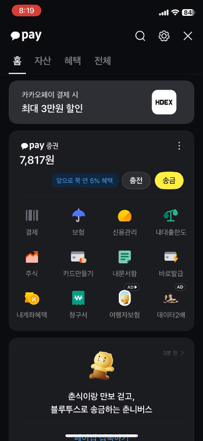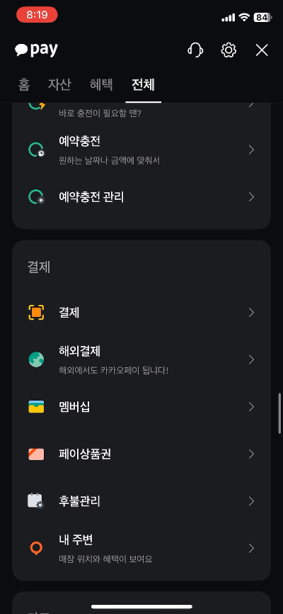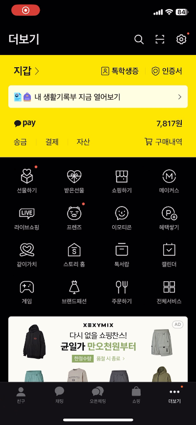 카카오 더 보기 -> 카카이페이 -> 전체 -> 더보기 코너까지 오면