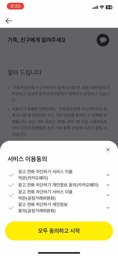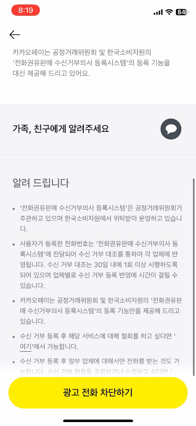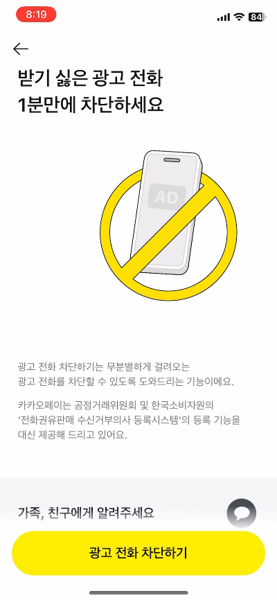 이제 카카오톡 광고 전화 차단하기를 실행해 주면 되는데요.