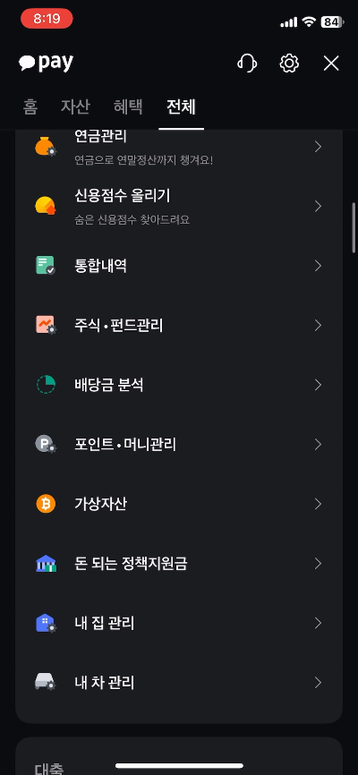 카카오 더 보기 -> 카카이페이 -> 전체 -> 더보기 코너까지 오면