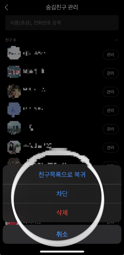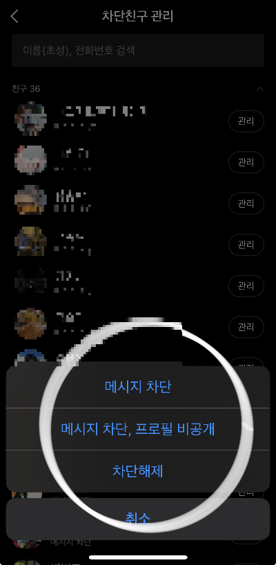 - 차단친구 관리