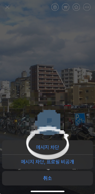 메시지차단, 프로필 비공개를 선택하시면