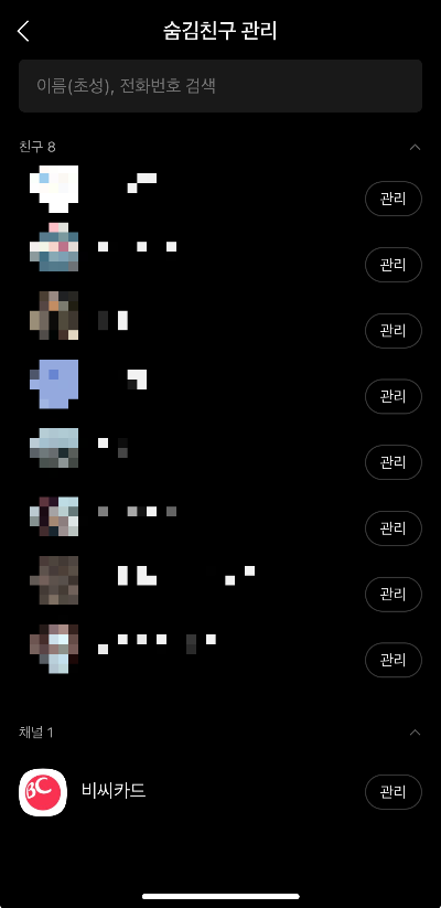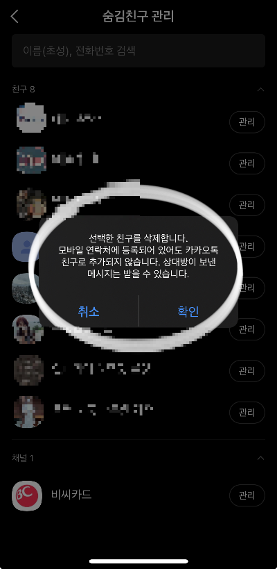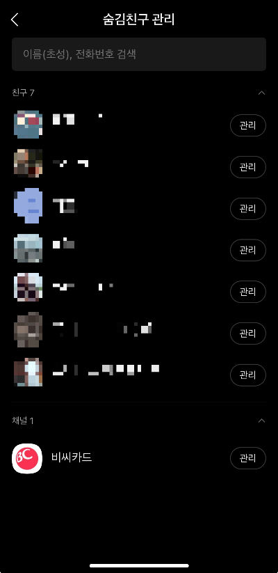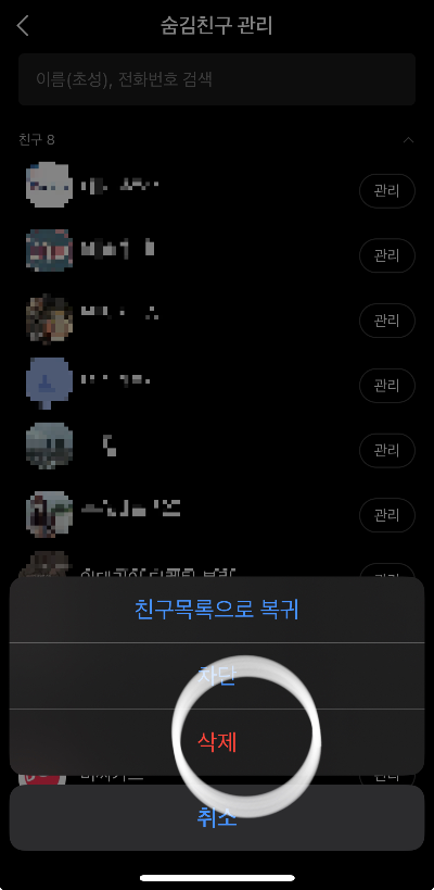 - 숨김친구 관리