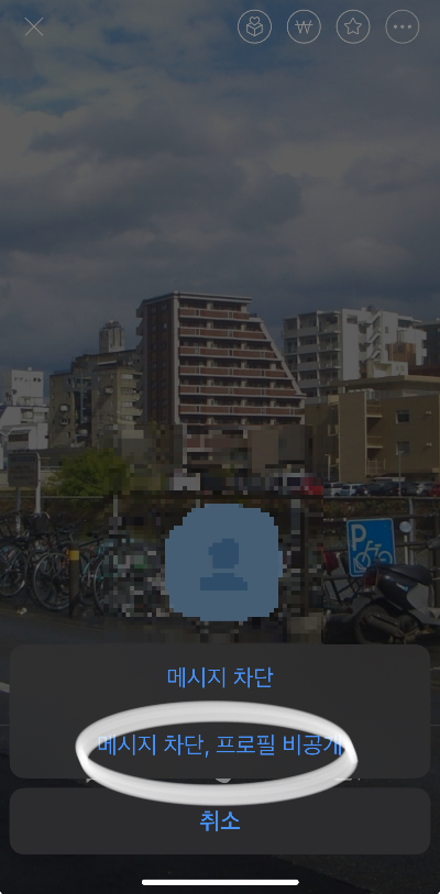 즉, 메시지차단과 나의 프로필정보 둘다를 차단하는 방법입니다.