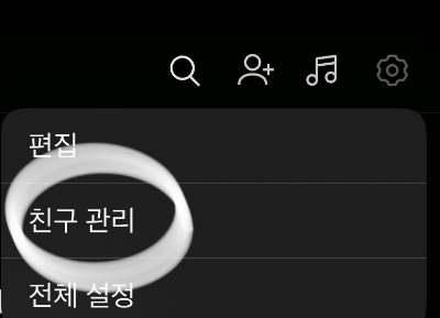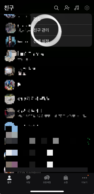 1. 친구목록에서 우측 상단 "톱니바퀴" 모양을 선택
