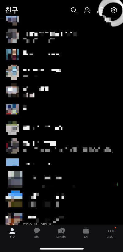 1. 친구목록에서 우측 상단 "톱니바퀴" 모양을 선택해 주세요.