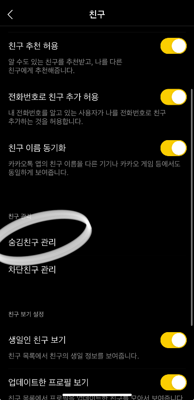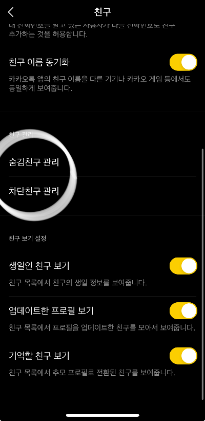 카톡 친구 숨김 차단 친구 관리 방법