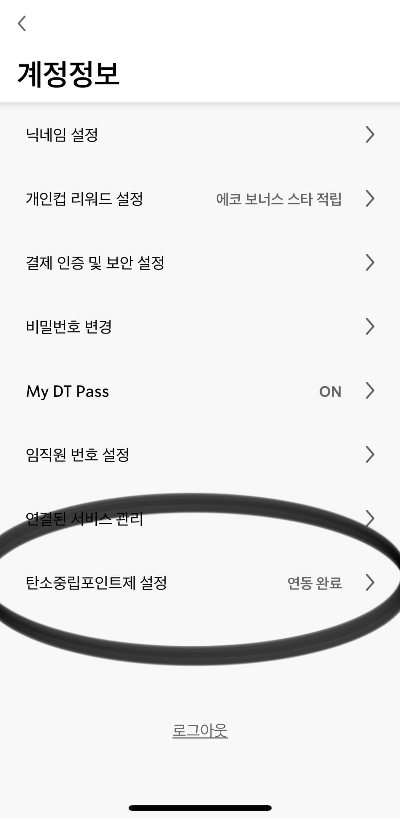 5. "탄소중립포인트제 설정"을 선택해 주세요.