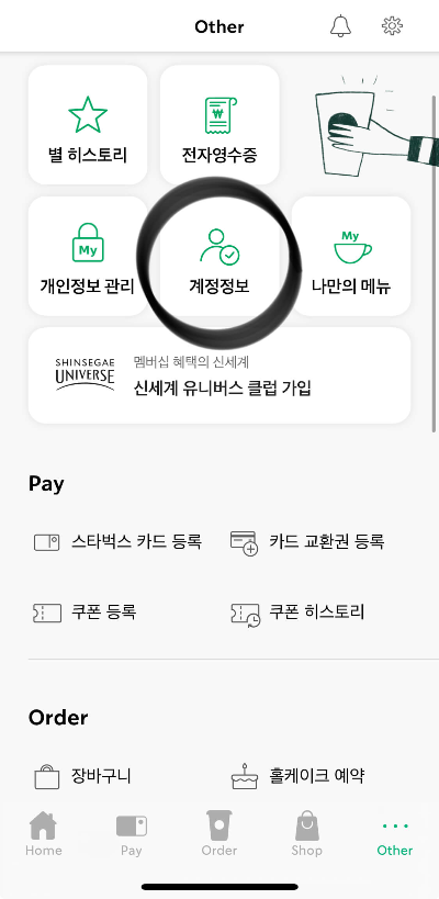 2. 스타벅스 홈화면에서 우측 하단 "Other" 선택해 주세요.