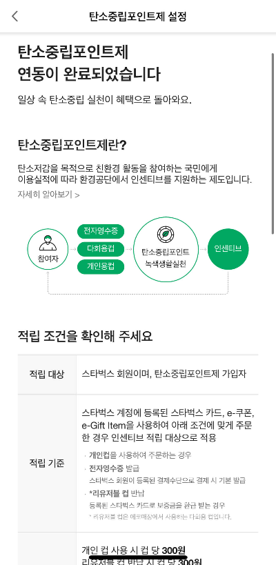 꼭 탄소중립포인트제 스타벅스 연동하셔서 편하게 인센티브 적립받으세요.
