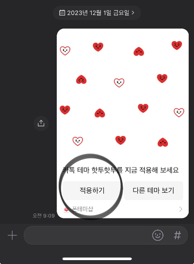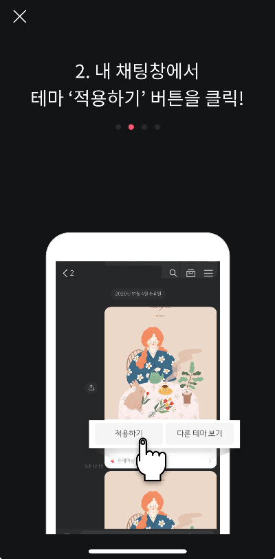- 선택된 채팅창에서 테마 적용하기 버튼 클릭